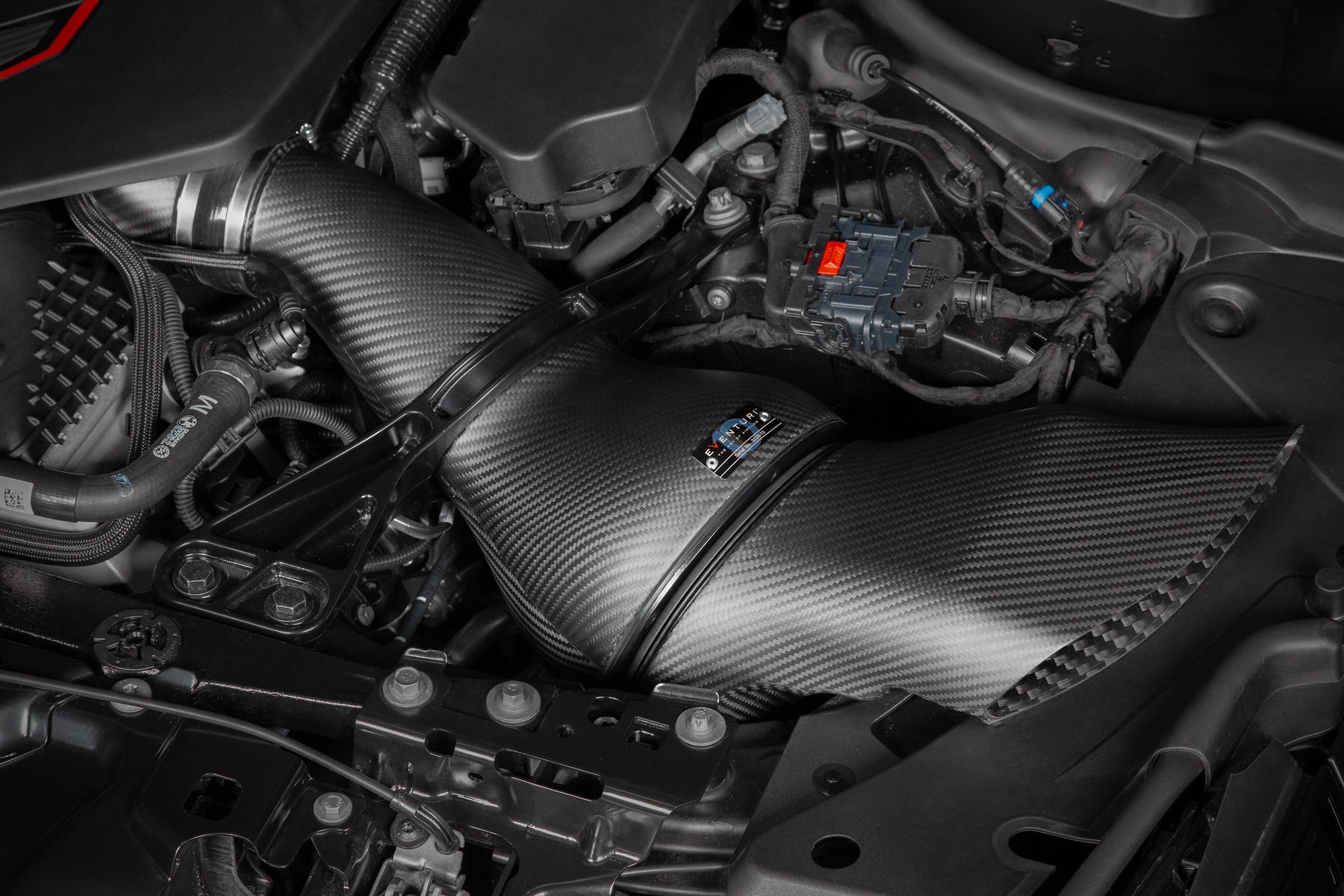 The G9X M5 Eventuri system uses our Patented Carbon Fibre Housings with our Gen 2 bespoke filters, which provide an aerodynamically efficient airflow path from the filter to the turbos. Not just another cone filter with a heat shield but a unique design which invokes the Venturi affect and maintains laminar flow conditions to reduce the drag on the turbo