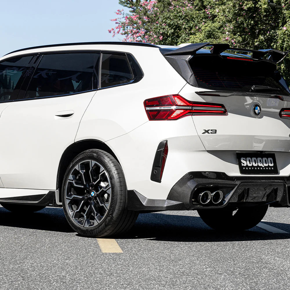 Elevate your BMW X3 G45 with Sooqoo precision-crafted carbon fiber X3 G45 Rear Bumper Inserts. Meticulously constructed from authentic dry carbon fiber using advanced 3K prepreg carbon fiber, this BMW X3 G45 rear window fins delivers exceptional durability while maintaining perfect OEM fitment. The aggressive aerodynamic design enhances your vehicle's sporty aesthetics and improves stability. Each piece undergoes strict quality control and comes with full 1-year warranty coverage. Experience the ultimate combination of engineering and cutting-edge carbon fiber technology for your BMW X3 G45.