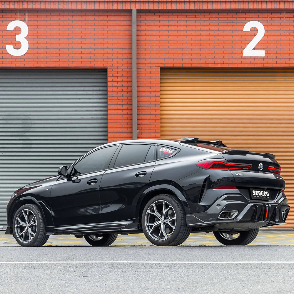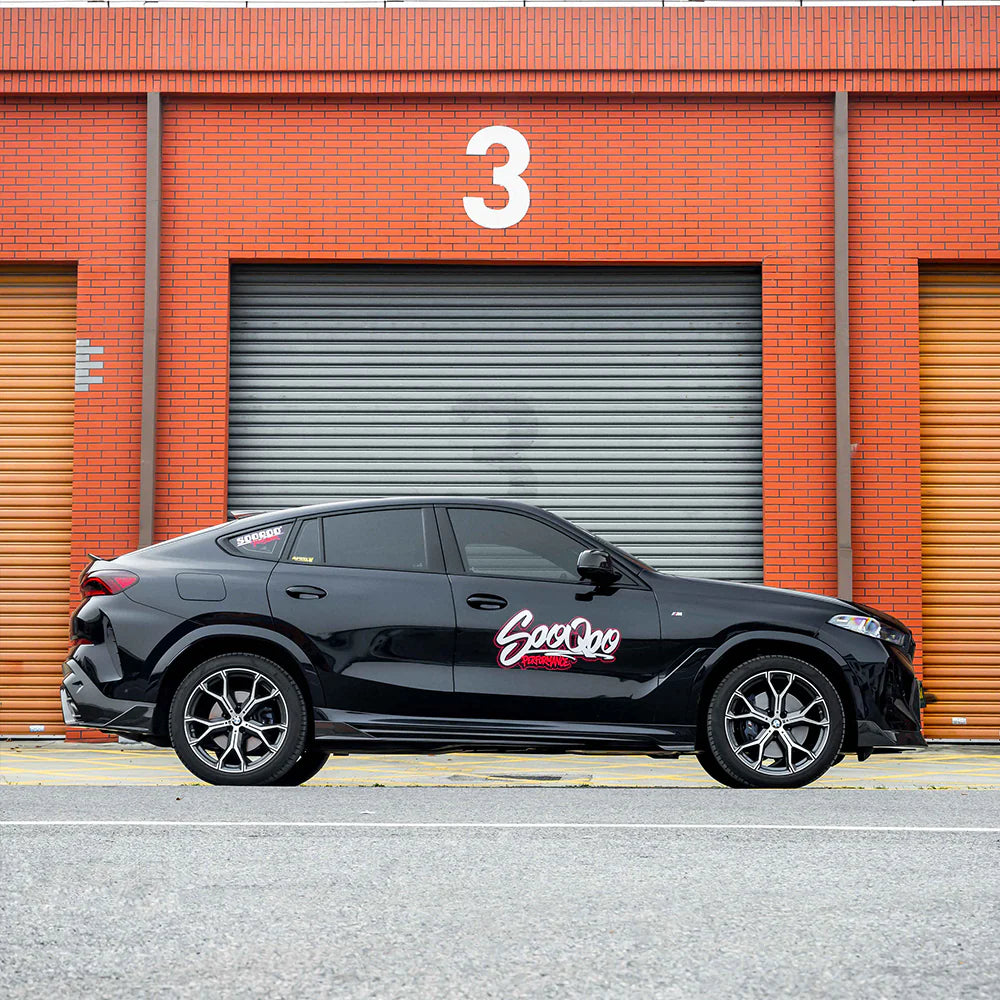 This side skirt features integrated aerodynamic winglets and enhanced multi-line sculpting that adds striking visual depth and a layered, three-dimensional effect to the vehicle’s silhouette. The design not only sharpens the side view but also includes a pre-mount for logo projector, allowing you to personalize its presence day and night. Whether emphasizing performance or style, this SOOQOO X6M F96 Side Skirt blends aggressive yet refined lines with functional detail—delivering an OEM+ upgrade that transforms the X6M’s stance with enhanced character, cohesion, and curb appeal.